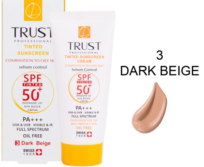 کرم ضد آفتاب رنگی بژ تیره تراست(خشک نرمال) ۴۰ میل Spf50