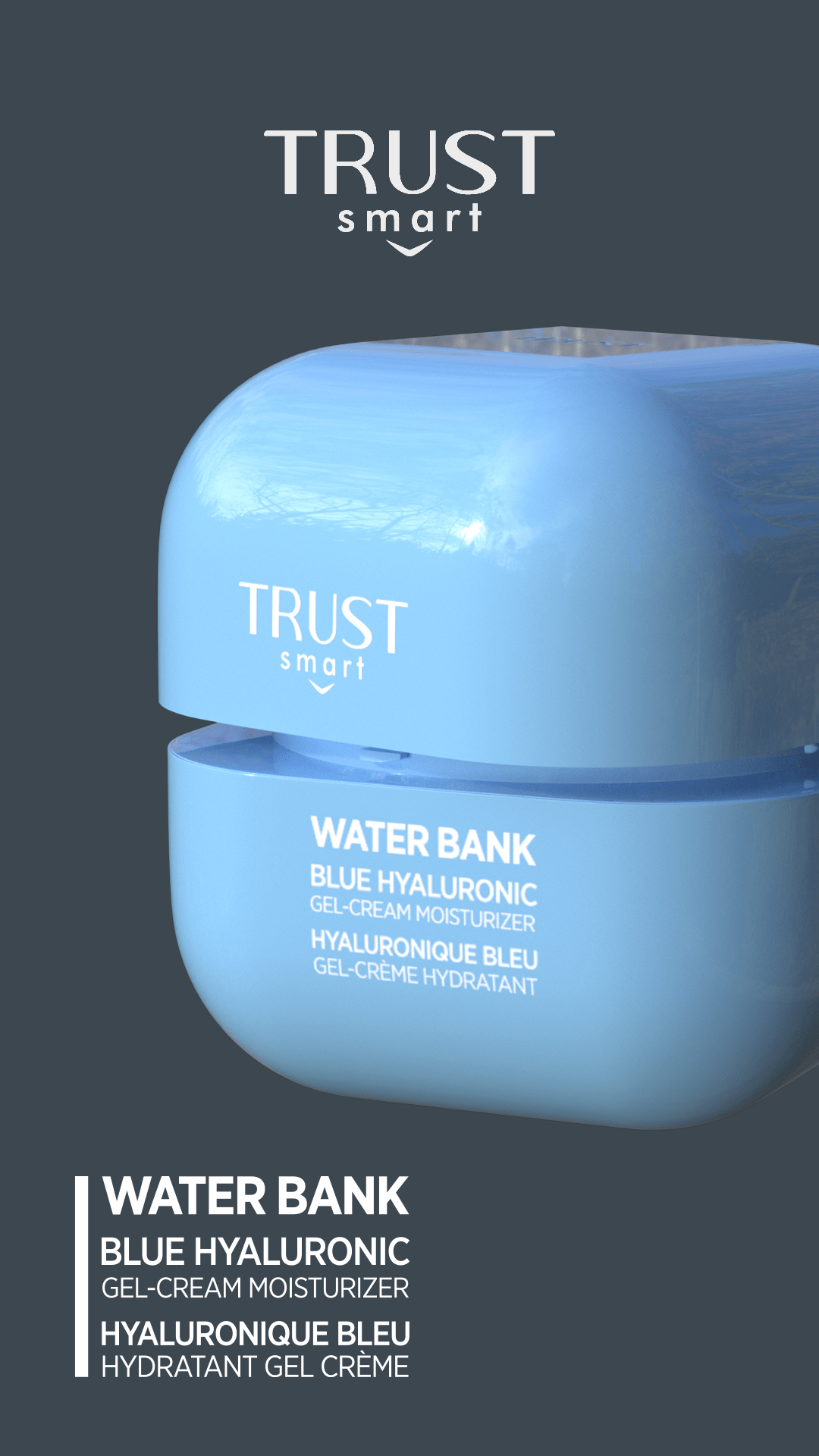 در واتر بانک تراست اسمارت تکنولوژیهای جدیدی تحت عنوان آکوا پورت و واتر-لاک مطرح میشود:• در این راستا ماده مؤثره آکواپورین موجب افزایش ساخت کانالهای انتقال آب در سلولهای پوستی (آکوا پورت) و انتقال مؤثر مولکولهای آب به داخل سلولهای پوستی و در نتیجه افزایش ذخیره آب سلولی میشود.